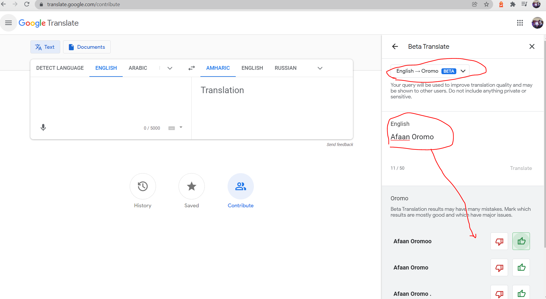 - Contribute kan jedhu seenaa (suuraa asii gadii ilaalaa)